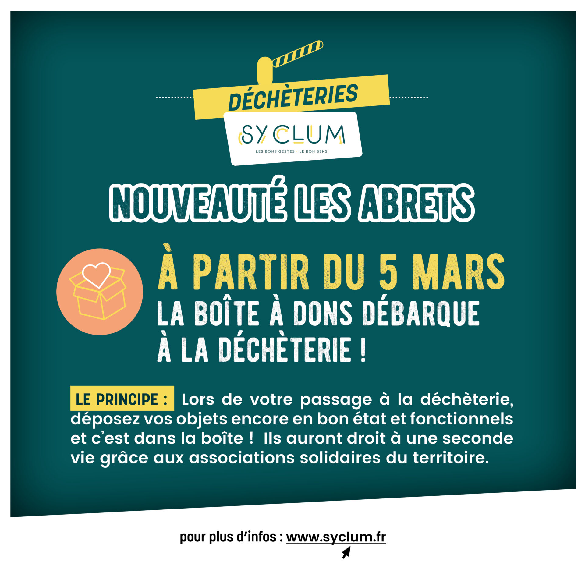 SYCLUM est ravi de vous annoncer l’installation de la boîte à dons à la déchèterie des Abrets- en-Dauphiné à partir de 5 mars 2026.